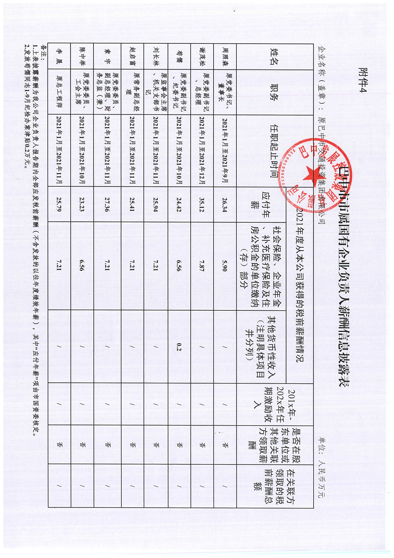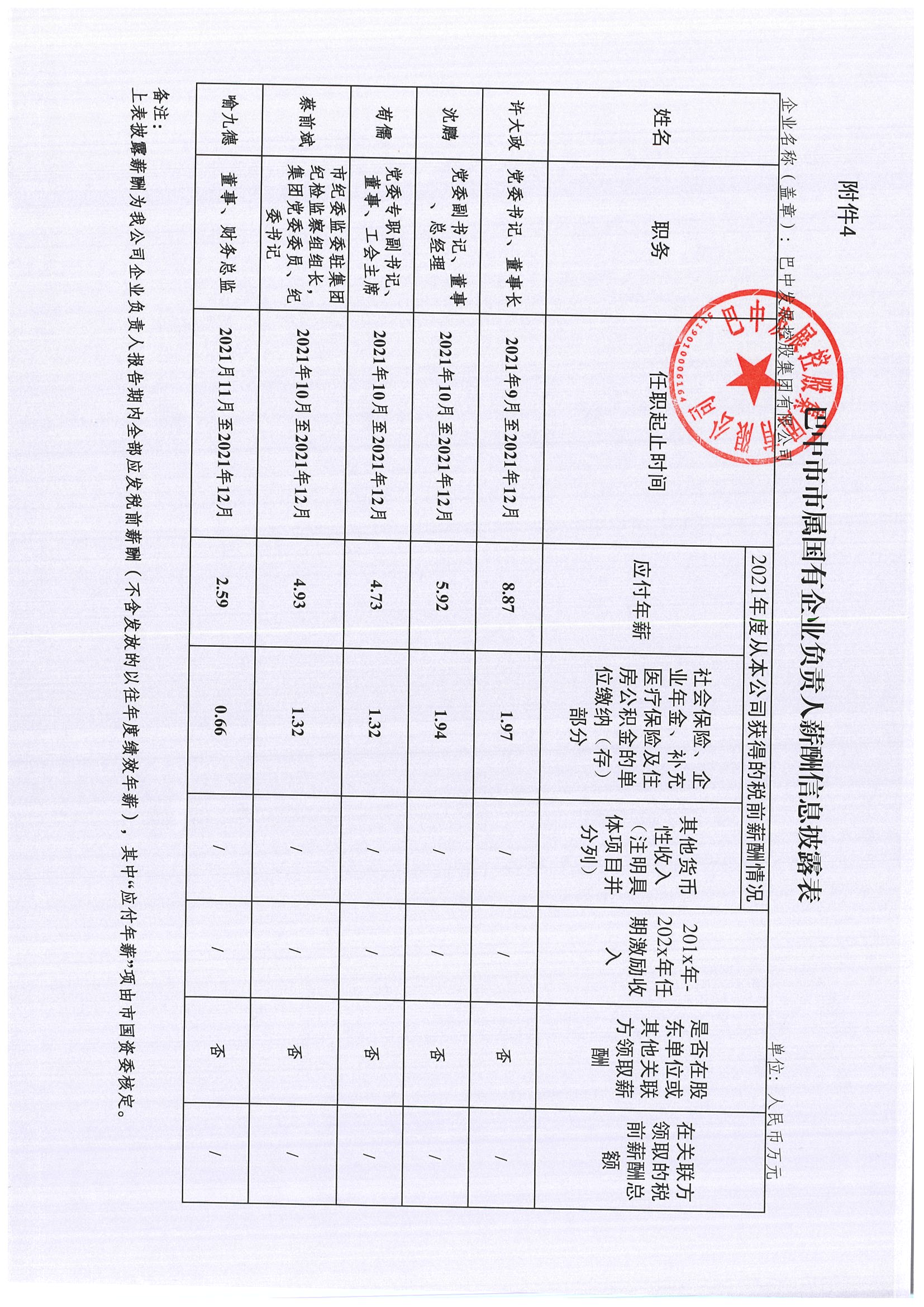 巴中市市屬國有企業(yè)負責人薪酬信息披露表