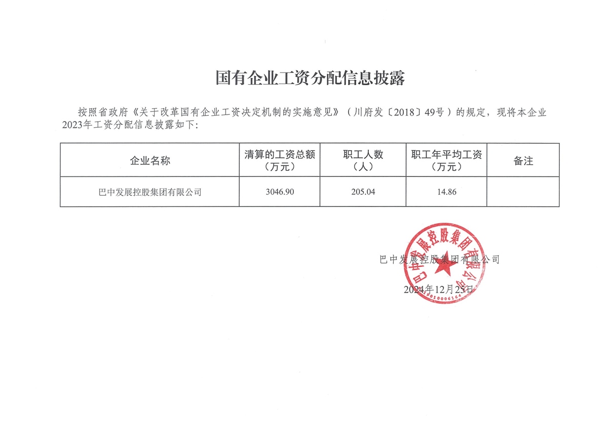 巴中市市屬國有企業(yè)負責人薪酬信息披露