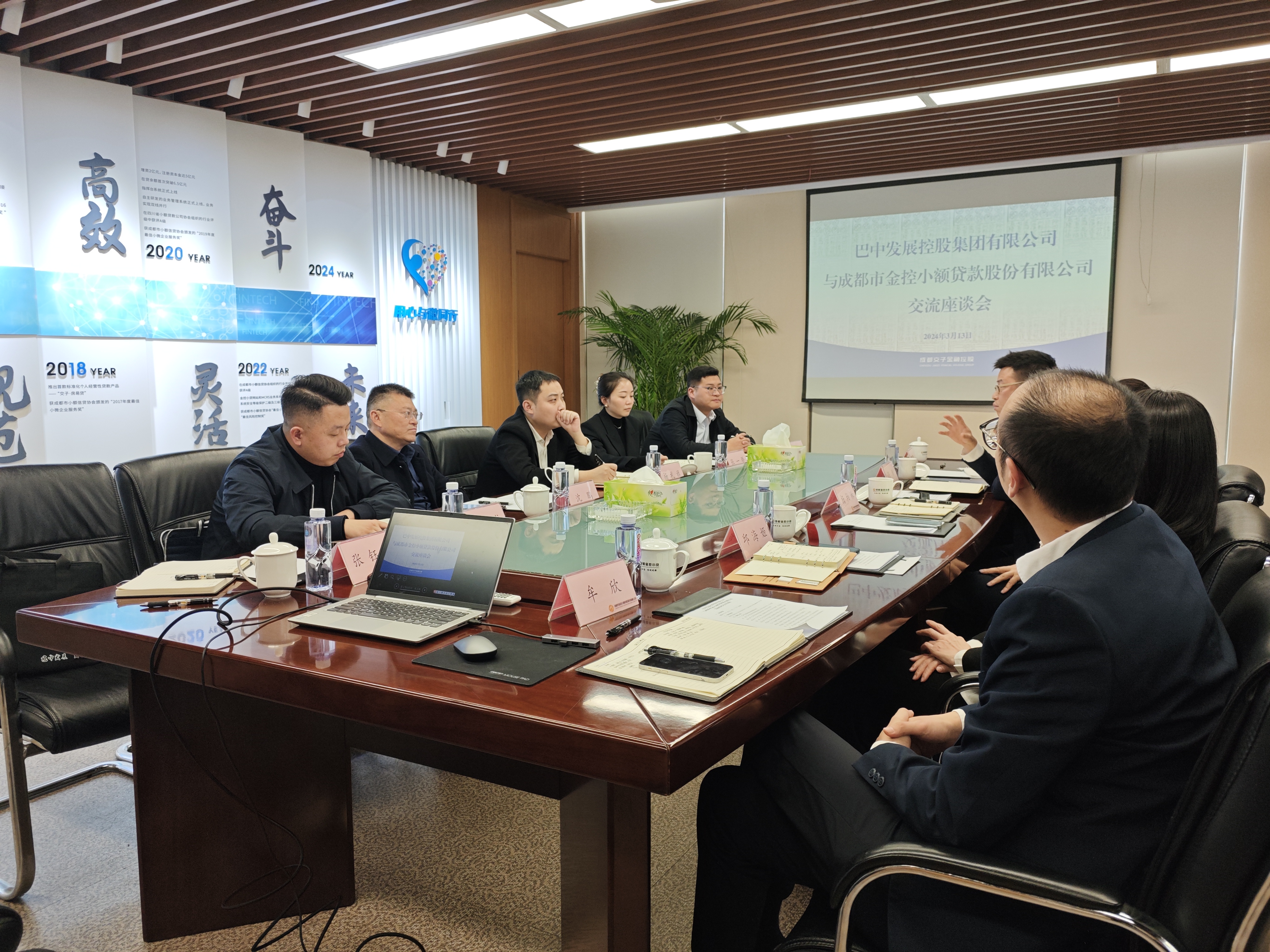 在與成都金控小額貸款公司、成都錦融小額貸款公司座談交流中,沈鵬首先介紹了巴中發(fā)展集團改革發(fā)展以及金融業(yè)務(wù)板塊布局相關(guān)情況,雙方圍繞小額貸款業(yè)務(wù)開展、信息系統(tǒng)搭建、金融產(chǎn)品創(chuàng)新、風險機制建立、專業(yè)人才隊伍建設(shè)等方面進行了深入交流。
