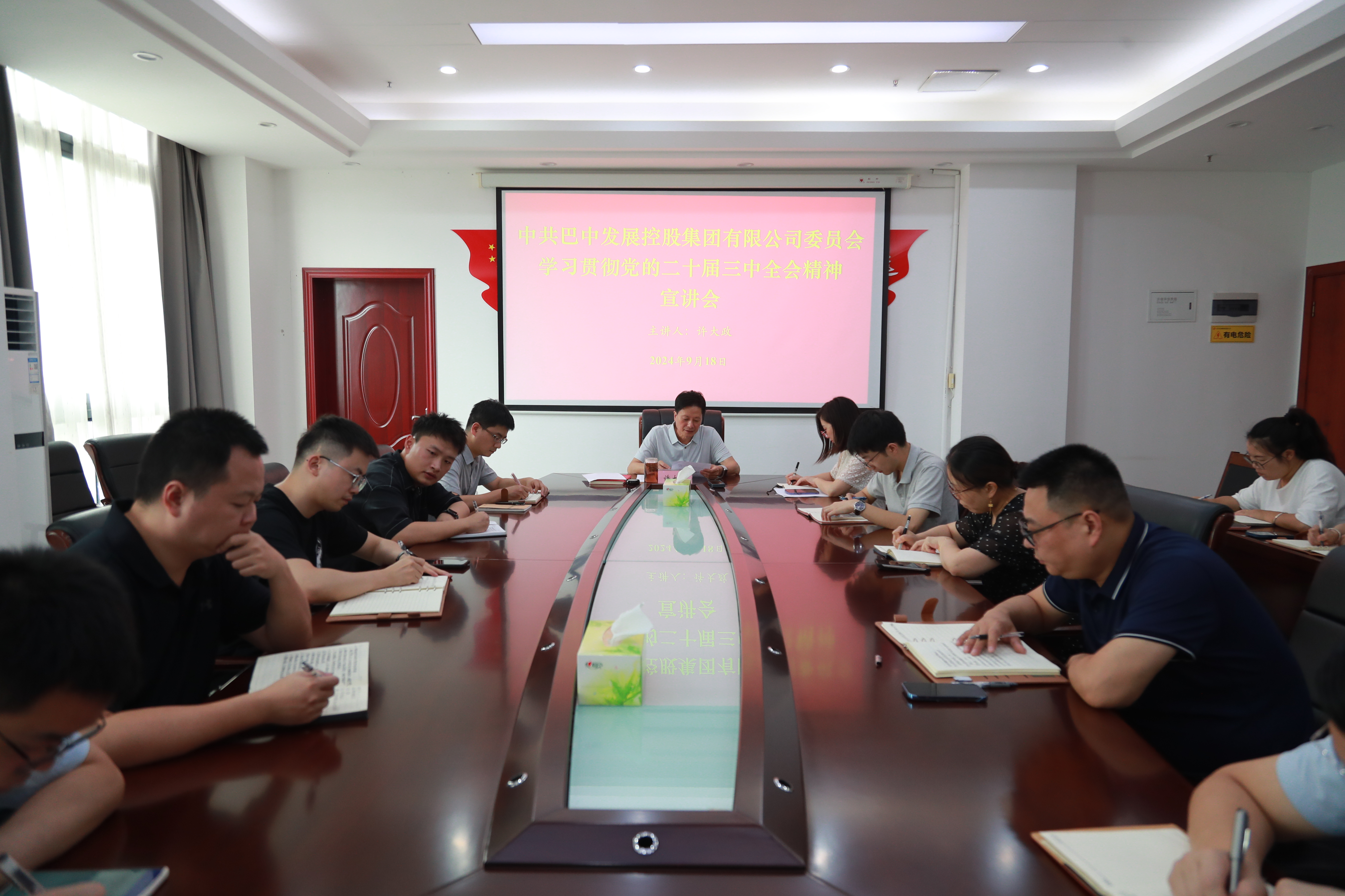 9月18日,集團(tuán)黨委書記、董事長許大政對(duì)黨的二十屆三中全會(huì)精神開展了宣講,集團(tuán)本部全體干部職工參加宣講會(huì)議。